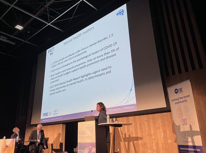 Speakers included: Prof. Jean Antoine Girault (FENS President); Prof. Wolfgang Oertel (EBC President); Prof. Harris Eyre (Lead of the Brain Capital Alliance, Co-Lead of the OECD Neuroscience-inspired Policy Initiative in collaboration with the PRODEO Institute, and Senior Fellow for Brain Capital with the Meadows Mental Health Policy Institute); Ms Vinciane Quoidbach (EBC Research project manager) Prof. Philip Gorwood (Hôpital Sainte-Anne, GHU Paris Psychiatrie et Neurosciences, Université de Paris, France); Dr Michela Tinelli (London School of Economics); Prof. Allan Young (Institute of Psychiatry, Psychology & Neuroscience, King’s College London); Dr. Joachim Scholpp (Global Head of Translational Medicine CNS & Emerging Areas, Boehringer Ingelheim); Dr Ledia Lazeri (Regional Advisor for Mental Health at WHO Regional Office for Europe); Dr Anna Cristina d’Addio (Senior Policy Analyst, Global Education Monitoring Report, UNESCO)